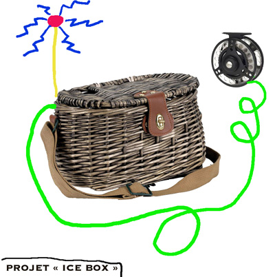 ” Well, Nothing prevents us from imagining that cranking the handle of your reel could produce enough electricity to support a device that would refrigerate your creel, magically allowing you to return home with remarkably cold, fresher fish. And to grind your coffee while cranking your reel would be, technically, child’s play. So you see my friend, with a little thought, the reel could become a tool that could simplify your addiction and could add a desired spice.”