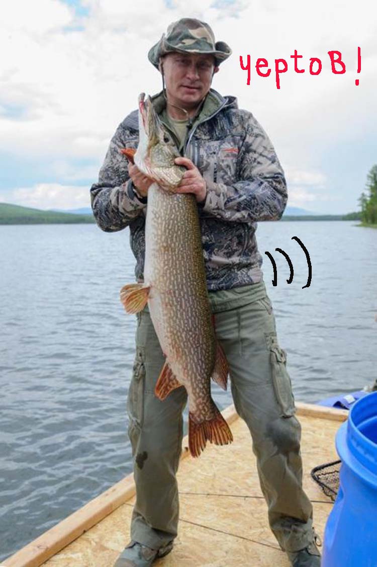 Quitte à finir nos jours dans des geôles glacées en Sibérie, nous prenons le risque insensé de publier cette photo représentant Mr V.Poutine en pleins torrides ébats érotiques avec un brochet femelle.