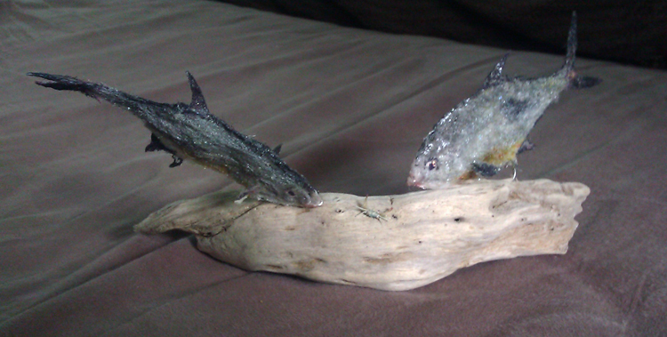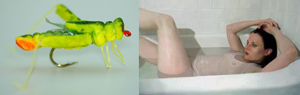 For example, when I discover a “French tricolor” dear to Mr. Bresson, what comes immediately to mind is “Abstraction”. A very colorful streamer becomes “Fauvist”, a chiro nymph is clearly “minimalist”. And a perfect imitation of a grasshopper with eyes that look at you and legs that look like they’ll move… right away I think of “Hyperrealism” etc… Today my friend Ollie OWENS, famous fishing guide in Hawaii, sent me one of his strange creations that doesn’t resemble anything common, nevertheless brings in loads of fish (see the earlier post). There I hesitate between “Outsider Art” or some improbable thing from the planet Mars that, let us not forget, has canals: therefore fish!