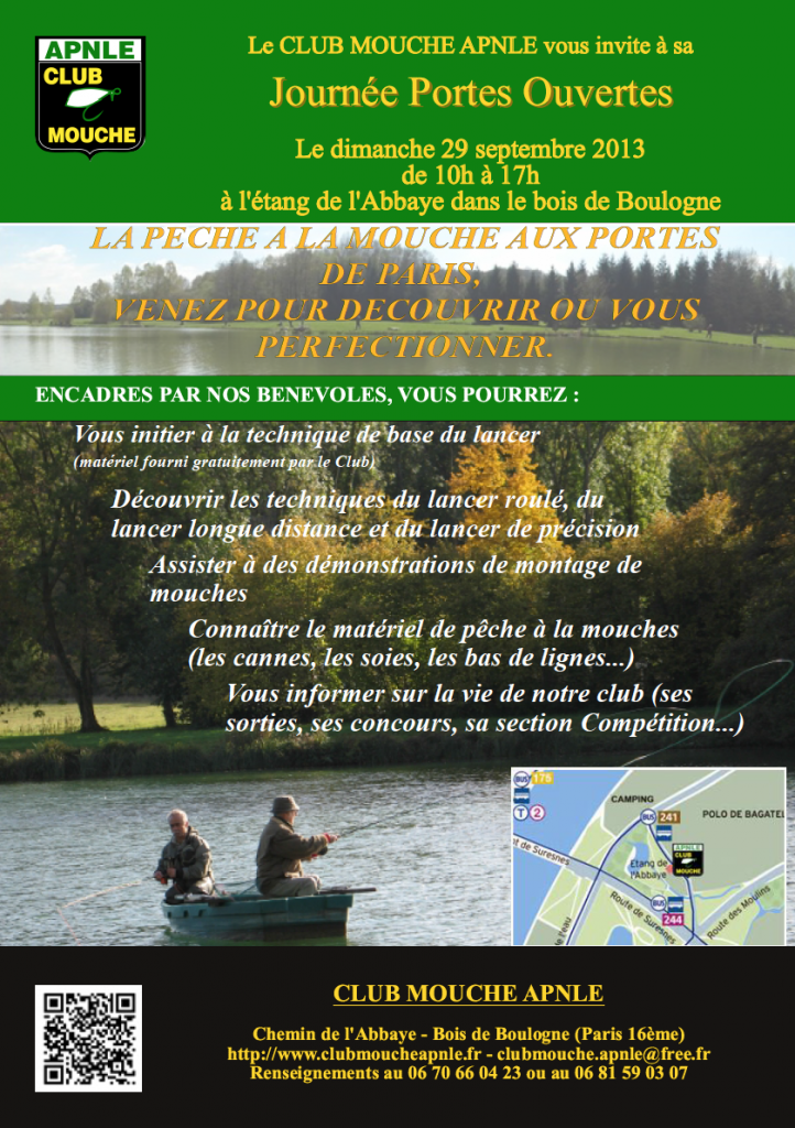 If you’re in Paris and are looking for a fly fishing club, it’s at the APNLE you n-want to go! Casting lessons, tying lessons, reservoir fishing and much more! And guess what, sunday is “Open House”!
