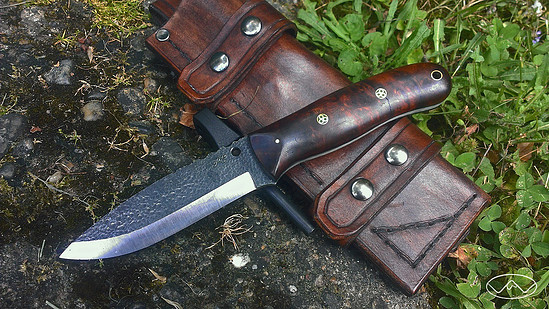 Pierre Elie Gaspin is a young knife maker from Gers, Southern France. He works really well, and a youngster in that business is not so frequent here. He’s got that nice balance between a feeling for his own land, deep roots, and a global network connexion. His blades have that real life feeling, but get inspiration from what’s happening on planet knives. Shapes inspired from true and tested solutions in many contexts: Fallknivens, Moras, big american Bowies, or Malaysian parangs… but always melt into his own style, with a good deal of input from some well known French bushcrafters. He will also build a knife you designed if you want. Of course, custom means delays (6 months). You can’t rush art. I love. it.