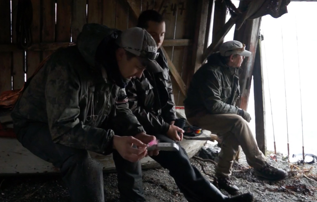 Au bord des Fjords, là-haut, en scandinavie, en Avril il n’existe qu’une seule chose à faire, visiblement, c’est de pêcher la truite de mer. Double tractionner, stripper, stripper, double tractionner, stripper, stripper et recommencer sans cesse. Et regarder passer le temps dans la vieille cabande en bois. Le bonheur des pêcheurs est une chose que personne d’autre ne comprendra, jamais.
