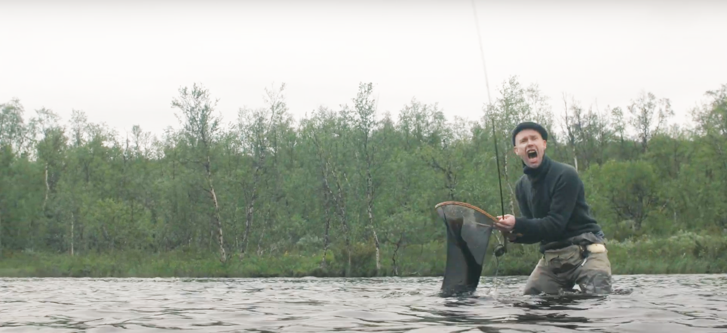C’est toujours avec plaisir que l’on retrouve nos amis de Podsol, là, nous sommes avec Håvard Stubø de Jazz & Fly fishing, qui à l’abri de sa tente attend que la météo soit plus clémente. Heureusement qu’on peut savoir à l’heure près ce qui nous attend avec les smartphones, ça enlève un peu d’aventure (pas mal, même) mais ça permet de savoir où on va ! Et une fois que la pluie est tombée, il faut attendre quelques heures que le niveau rebaisse et que l’eau s’éclaircisse, là on peut avoir la chance de pécho une mahousse mémère !